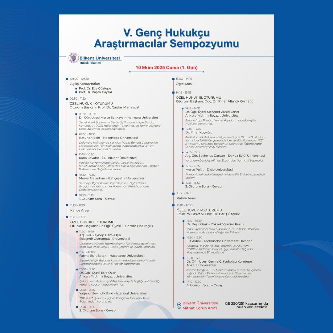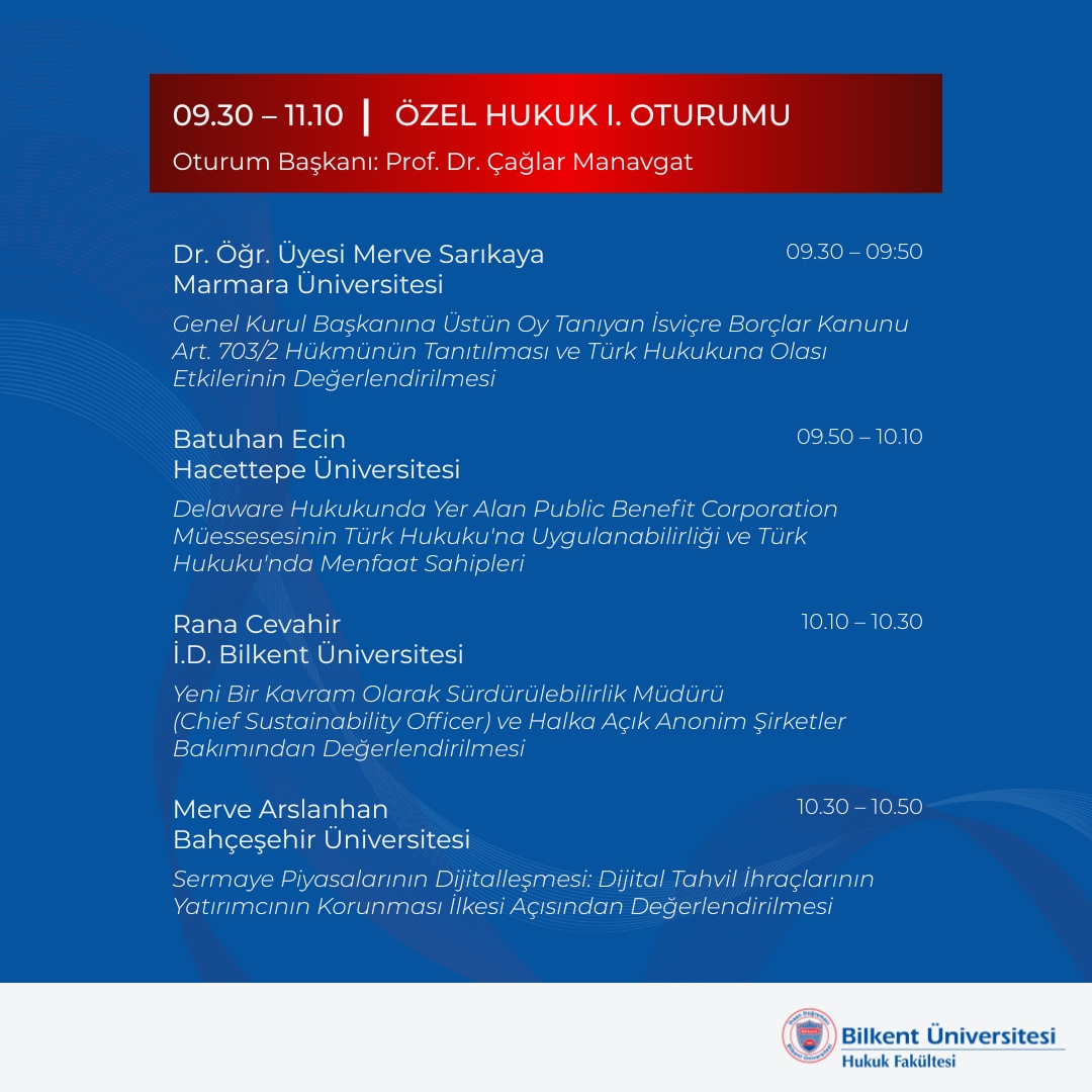 The first day of the symposium, organized by Bilkent University Faculty of Law, will take place as follows: