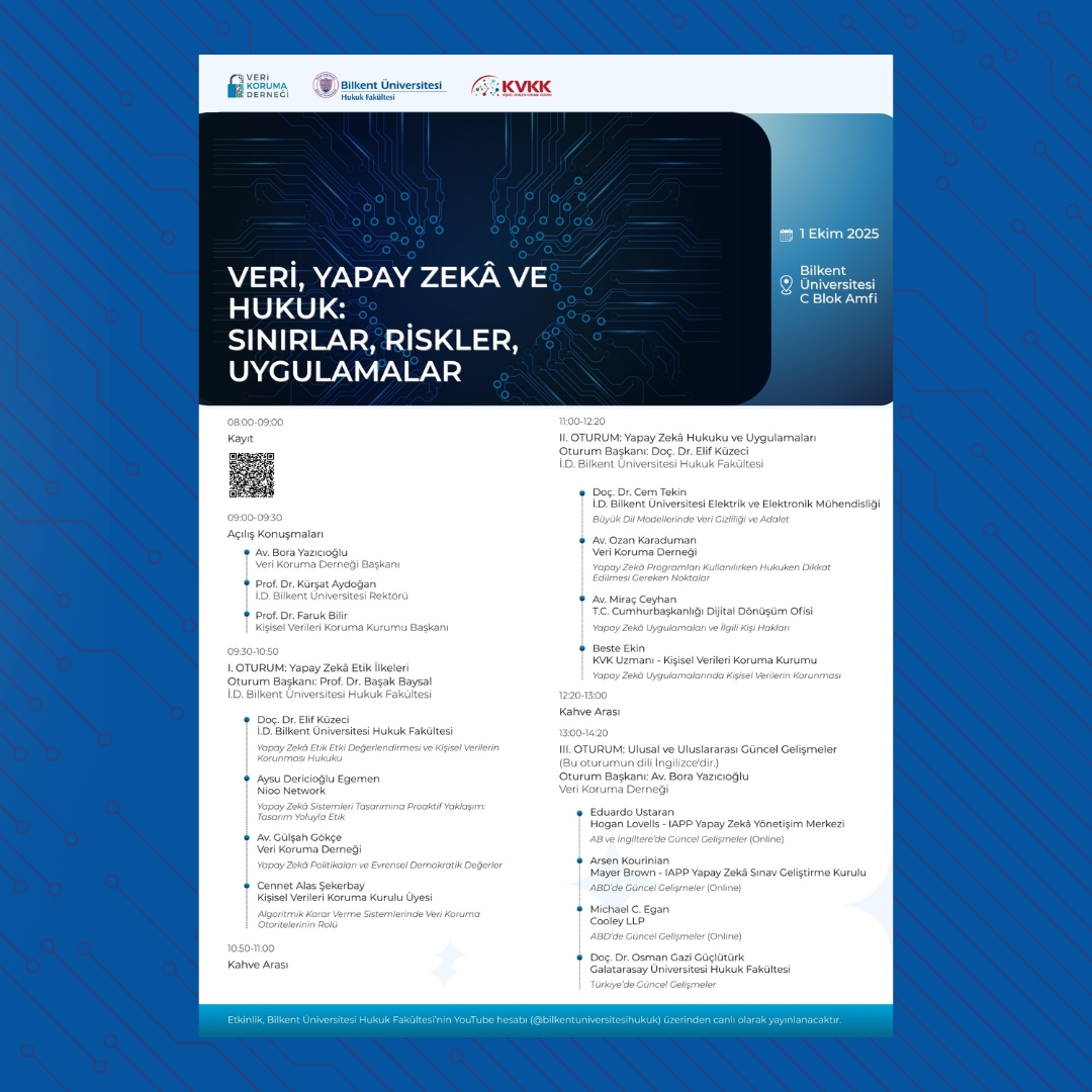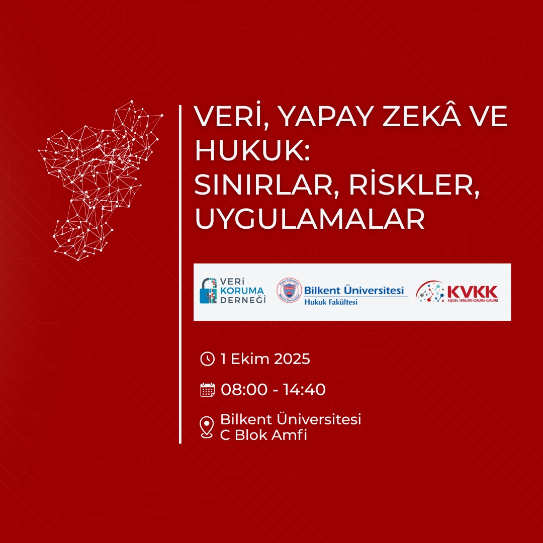 As Bilkent University Faculty of Law, we are pleased to invite you to our event titled “Data, Artificial Intelligence, and Law: Boundaries, Risks, Practices”, organized in collaboration with the Personal Data Protection Authority and the Data Protection Association.