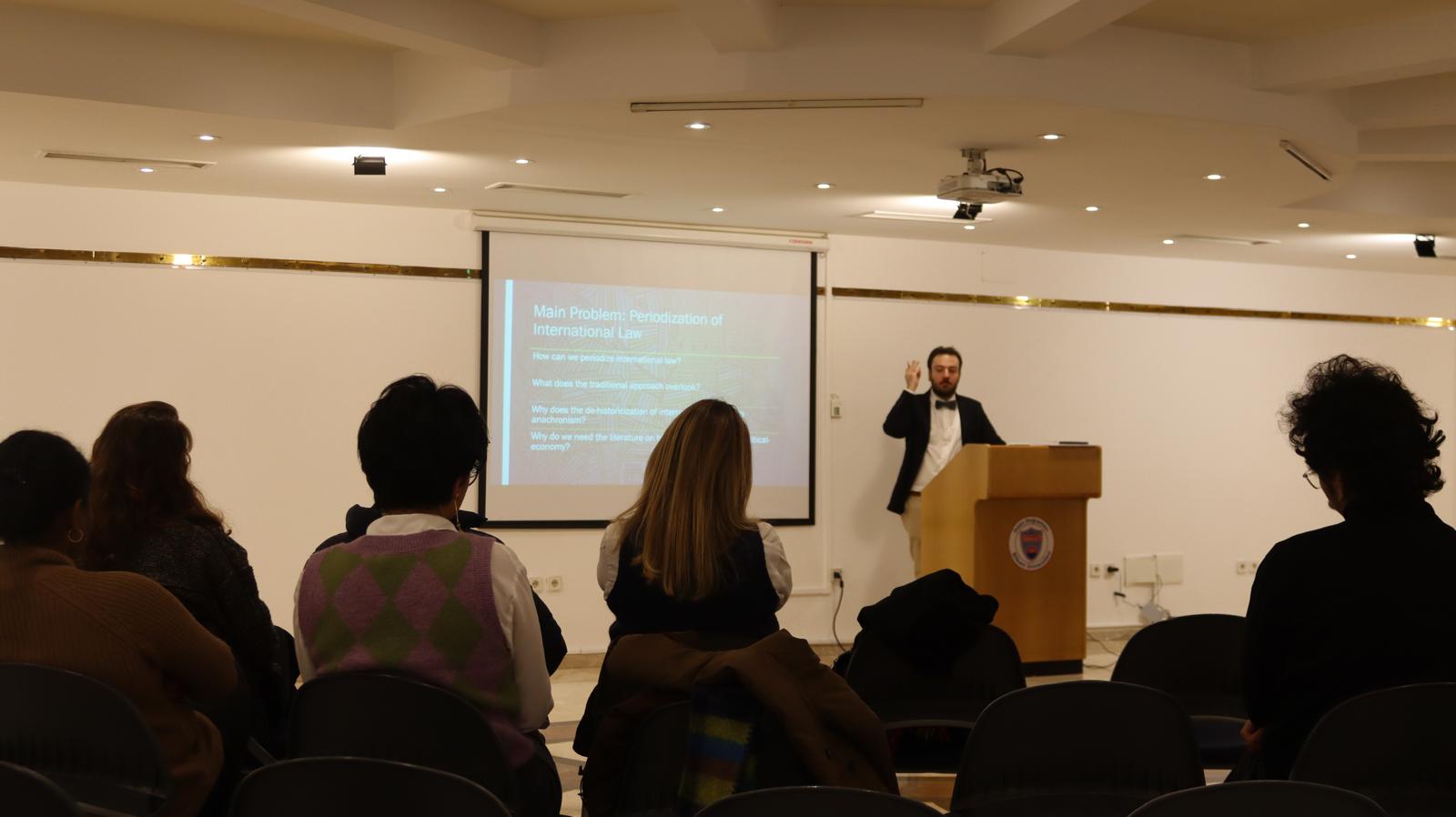 📍Bilkent Üniversitesi Hukuk Fakültesi olarak Kamu Hukuku Seminerleri dizisinin yeni oturumunu, 17 Aralık 2025 tarihinde Kütüphane Sanat Galerisi’nde, Dr. Gönenç Hacaloğlu’nun “Uluslararası Hukuka Tarihsel ve Ekonomik-Politik Bir Yaklaşım: Bağımlılık Teorisi Ekseninde Uluslararası Hukuk” başlıklı konuşmasıyla gerçekleştirdik.